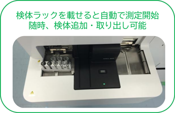 洗浄関連はシャットダウン時に自動実施。測定中に共通試薬やチップ等消耗品を追加可能(項目試薬は対象外)